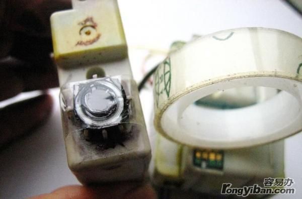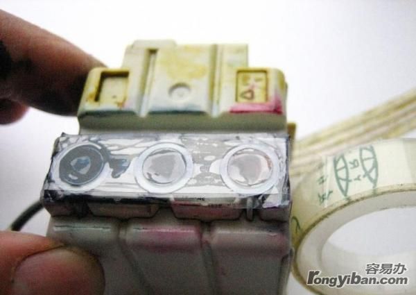 用透明胶带封住墨盒口,防止墨水乱滴: