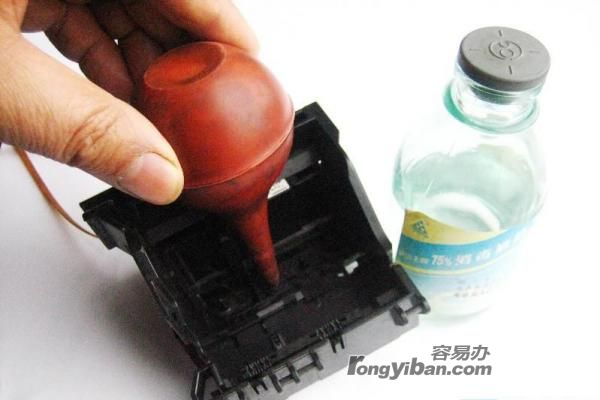 用洗耳球从外部喷孔向内部注入酒精顶洗: