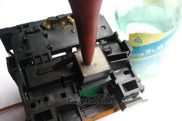 首次用酒精顶洗后,休息20分钟,让喷头内部的酒精溶解顽固染料,再用酒精内外顶洗4、5遍。4、清洗效果观察,将装有干净热水的洗耳球从字车内部分别给四个墨管顶水,观看喷孔出水情况,如果出水情况良好,疏通工作就可以结束了。