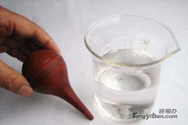 2、用热水顶洗,用洗耳球吸取干净的热水(70℃左右):